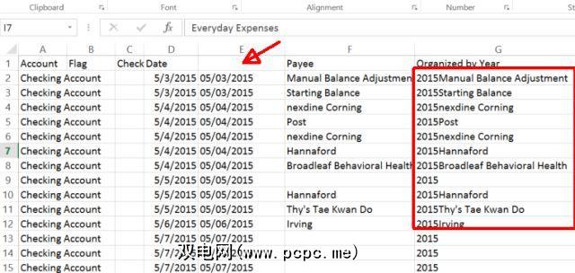 请记住,如果您确实想从日期中提取文本,则需要使用“ = TEXT(D2," mm / dd / yyyy")"功能将其转换为文本格式(而不是日期)。然后,您可以使用RIGHT函数提取年份。