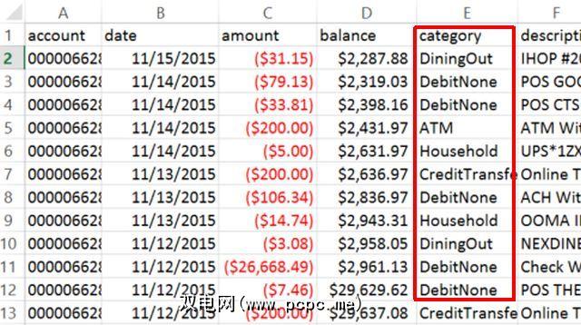 理想情况下,银行会自动将您的支出归类,或者您已经设置了帐户,以便将事物归入支出类别。例如,我们去的所有餐馆都贴有“ DiningOut"标签。