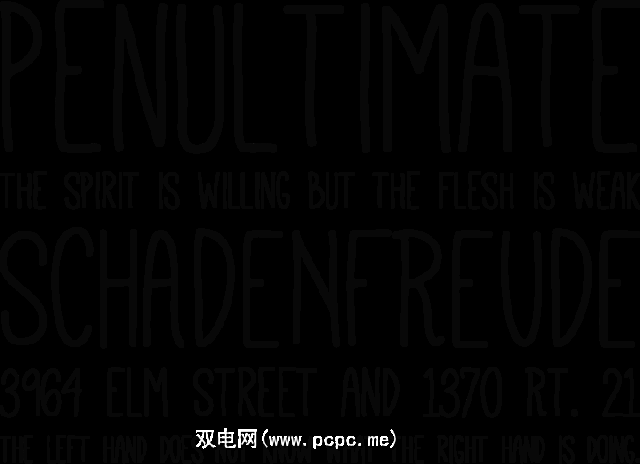 如果您想要Cutepunk之类的东西,但手写笔或孩子般的外观更真实,请尝试一下Skinny。字体只能使用大写字母。