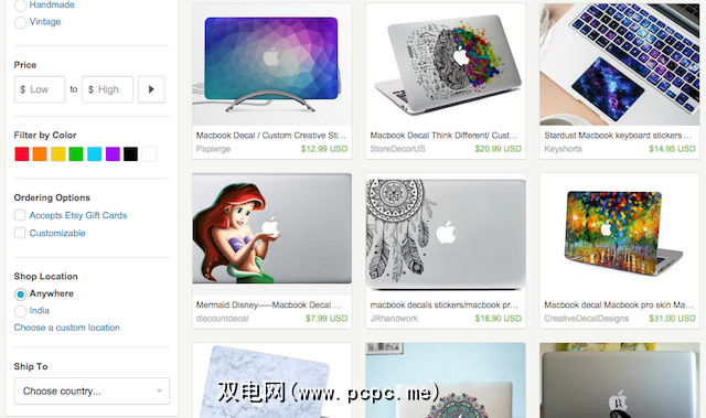 Etsy,是手工制作产品的eBay的替代品,是购买MacBook贴花纸的好地方,因为您会发现有几位独立艺术家提出了单个他们在这里出售的创意作品。使用侧边栏过滤器选择“手工制作",这样您就可以获得在Internet上其他地方找不到的创意设计。