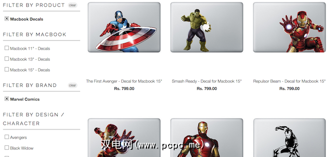 提示:我们喜欢《复仇者联盟:奥创纪元》,MacMerise也是如此。在过滤器中,您会在品牌下找到“奥创时代"。不客气。