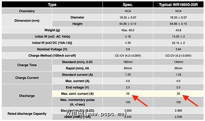 在撰写本文时(2018年6月),当前18650电池可达到的最大CDR为38mAh(2000mAh)。一些虚假的制造商声称40A或3000mAh或更高容量时的额定电流为35A,但这不是值得信赖的额定值。电池技术在不断发展,因此希望它会发生变化。