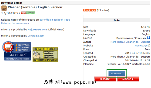 Xleaner网站以德语为母语,尽管Google翻译可以帮助我们立即将其翻译为英语。该页面可能看起来有些混乱,但是下载包含Xleaner文件的存档就像单击下面的屏幕快照中的 Download 按钮一样简单。