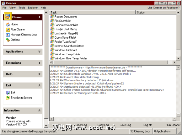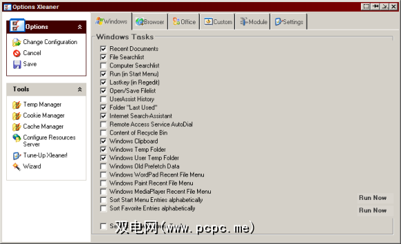 在这里,您可以看到所有可以使用Xleaner清除的Windows任务。