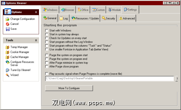 Xleaner还包括许多特定于应用程序本身的设置。您可以将其设置为从Windows开始,自动检查更新等等。在设置下有几个选项卡供您检查。