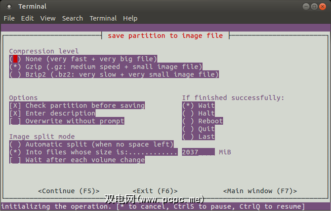 选择正确的要执行的操作(确保所选的选项带有星号),然后按 F5 继续。在以下屏幕中,选择压缩级别,然后选择您喜欢的选项。。您还可以选择设置图像分割模式,以及设置有关在