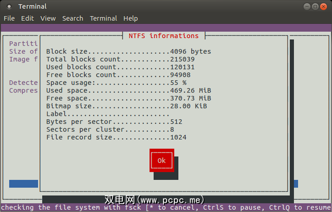 点击输入以运行命令。需要多长时间取决于磁盘或分区的大小。只要确保目标卷足够大即可存储它!
