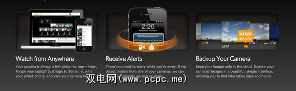 Sensr.net是类似于iVideon的基于云的高级解决方案。不幸的是,它仅适用于IP摄像机,因此我无法对其进行全面测试。界面看起来非常不错,尽管它仅支持图像而不支持视频。