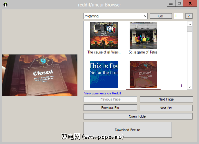 Reddit / Imgur Browser是SourceForge上托管的一个项目,可让您导航和下载喜爱的subreddits中的图像通过一个简单的界面。如您在上面的屏幕截图中所见,该221 KB的免费软件在下拉菜单中加载了最受欢迎的subreddit。虽然这很棒,但尚不支持您手动输入此列表中不存在的子Reddit名称的选项。