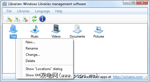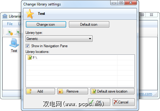 使用Librarian,您可以为库设置自定义图标,并将可移动驱动器和网络文件夹添加到库中。不包括其他功能,例如备份和还原Windows库以及创建符号链接结构。