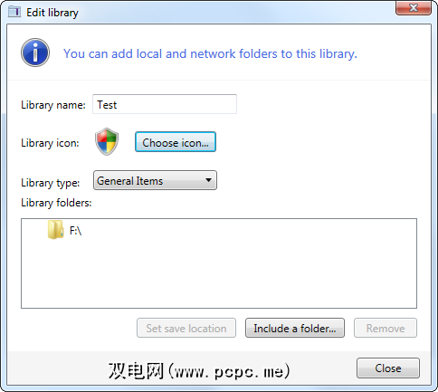 与标准Windows库界面不同,此工具将允许您将网络共享和可移动驱动器添加到库中