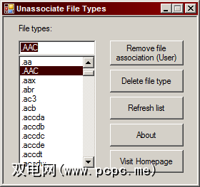 此便携式应用程序的唯一功能是为活动的Windows用户删除文件类型关联。删除关联的选项将变为灰色,直到您选择具有现有关联的文件类型为止。您还可以完全删除文件类型关联。
