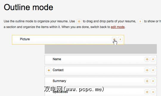 您还可以使用“大纲"模式来更改简历的外观:只需将其删除或拖放即可。删除要更改的部分: