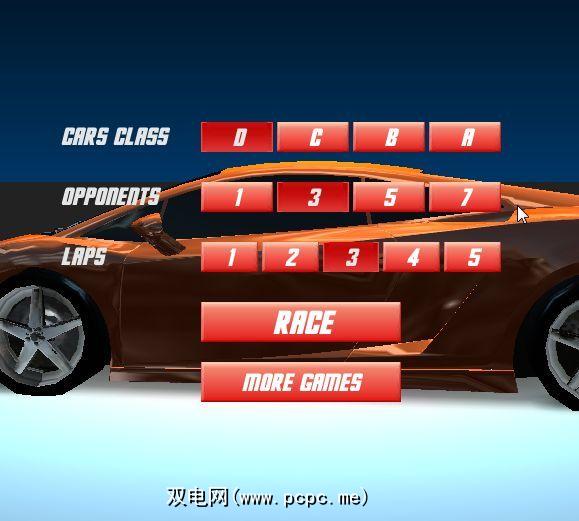 开始新的比赛时,您可以选择要与哪个级别的车辆比赛,AI对手的数量以及参加比赛的圈数