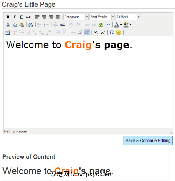 所见即所得(WYSIWYG)编辑器使创建格式化内容变得非常容易。通过顶部的 Page 标签可以查看页面的内容。通过修订,您可以查看所有已完成的更改(以Wikipedia样式)。