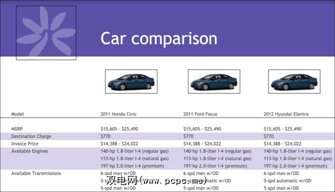 努力比较几种不同的汽车模型?将他们的统计信息和图片添加到此电子表格中,以便您可以让他们面对面竞争,而无需不断地浏览不同的标签以找到相关信息。