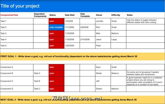 此电子表格提供了一种快速了解与哪些任务相关的方法仍然开放,完整,何时开始,由谁负责以及任务难度。使用这种跟踪电子表格以及上面的项目时间线,可以提供一个非常全面的工具包,以使每个人都保持跟踪。