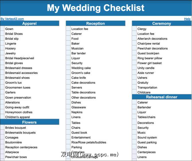 婚礼;另一个紧张的生活事件。借助此详细的Google文档清单模板,可帮助您更顺利地进行工作。这款方便的婚礼核对清单可确保您不会忘记任何当务之急,例如非常重要的蛋糕刀或安排托儿或运输。