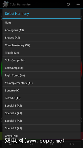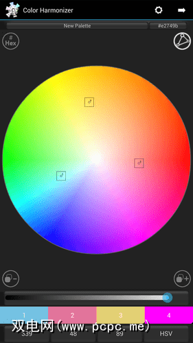 您在中心得到一个大色轮,并可以设置方案应具有的色板数量以及所需的和声。使用(如果有)。然后,您可以点击色轮,并实时查看方案更新。在我的Xperia Z上,Color Harmonizer的响应速度不是很好-实际上,它有时感觉完全呆滞。尽管如此,如果您正在寻找一种随时随地创建配色方案的传统方法,则应该尝试一下:它的直接界面和丰富的色彩和声选择可以弥补其无响应性。