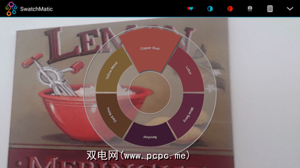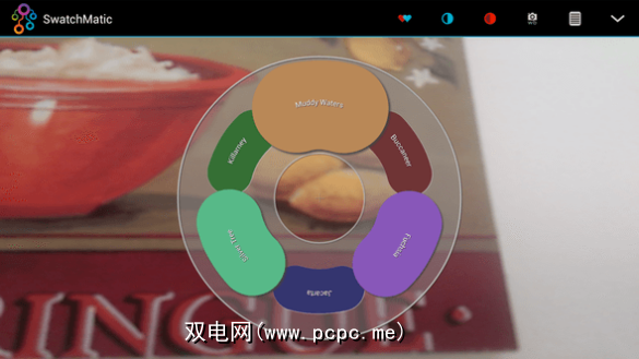 我将最好的保存为最后。过去我们曾接触过SwatchMatic,它仍然是根据照片制作配色方案的绝佳方法。这是一个增强现实应用程序:只需将相机对准某个物体,显示屏就会根据十字准线中的任何内容以六色方案实时更新。