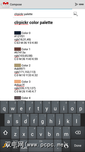 请注意电子邮件的有趣格式:它实际上包括每个单独的色板作为彩色矩形,除了其十六进制,RGB和CMYK值。此特定功能仅适用于Gmail。
