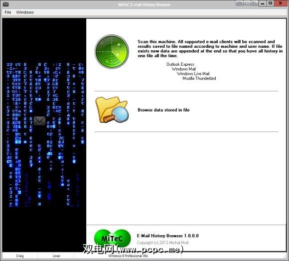 MiTeC的电子邮件历史记录浏览器随即打开与上一个应用程序相同的接口。它支持以下电子邮件客户端: