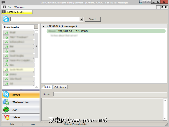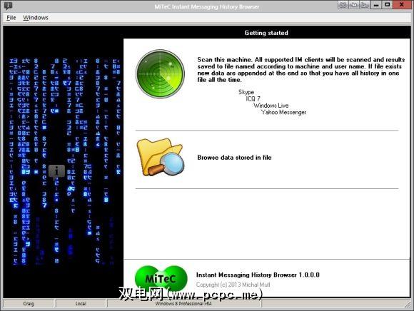 MiTeC的IM历史记录浏览器可能是最有趣的,只是因为IM历史记录有用真的是。它支持以下客户端: