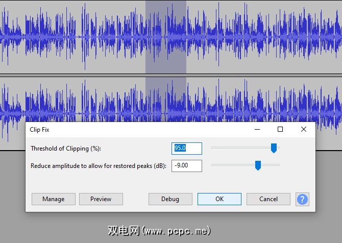 使用预览选项可以了解如何听起来,然后确定修复失真。您可能需要撤消( Ctrl + Z )并以稍高的幅度重新进行修复,以增加音量。