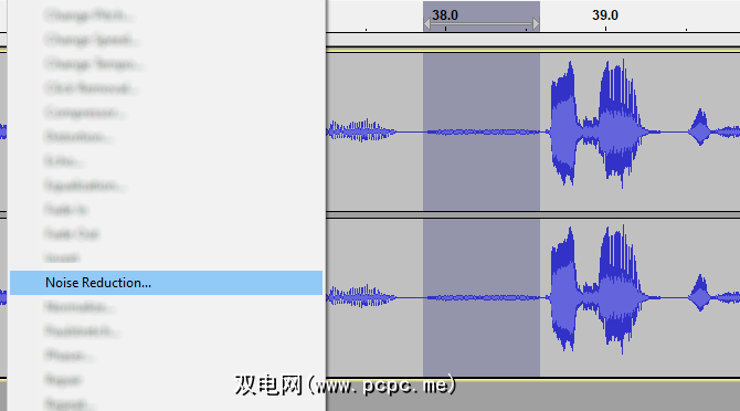最后,返回到效果>降噪,这一次单击确定。