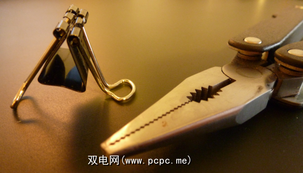 拿起装订夹并以90°角弯曲其中一个手柄。