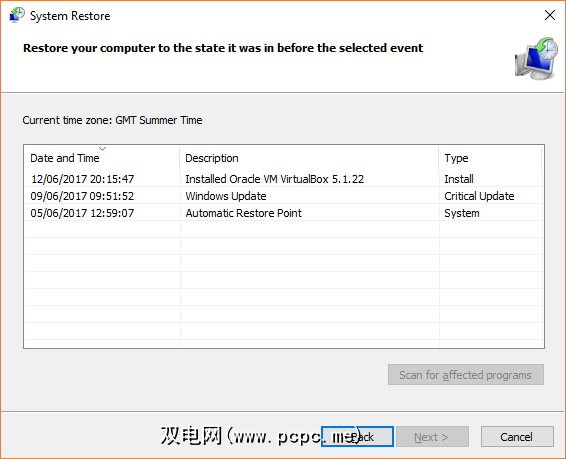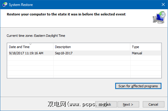 理想情况下,这将解决您的问题。但是,如果看到错误消息,或者系统还原执行的还原操作不能解决问题,请继续阅读下一节。