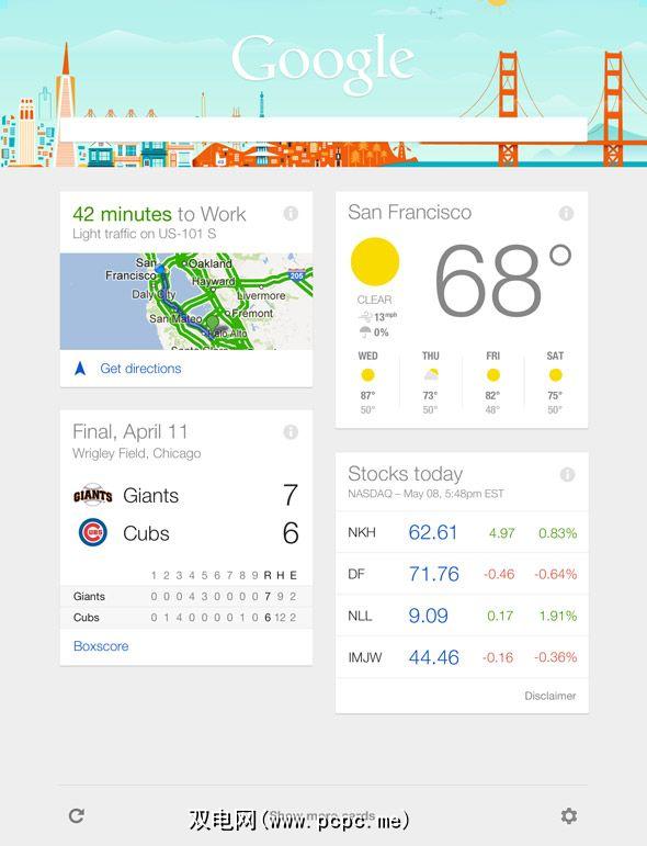 此Google即时仪表板填充了所谓的卡片自动。例如,如果正在进行一场大型比赛,就会显示体育比分,而您通常会搜索体育比分。天气选项将显示在您的位置。在国外时会弹出翻译和货币换算工具。如果您在机场,甚至可能会看到当前时间表。