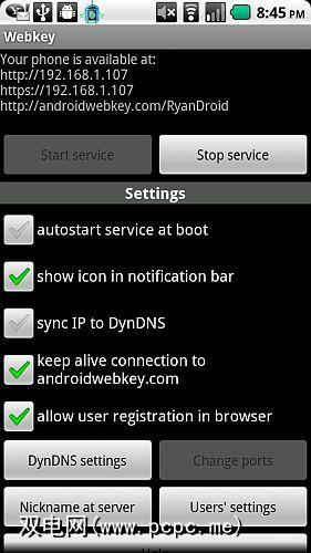 如果您在局域网上,则可以使用IP地址访问设备。从LAN外部或Internet上的任何地方,您都需要访问androidwebkey.com特殊页面来访问您的手机。登录后,您将看到此远程访问应用程序的真正功能。
