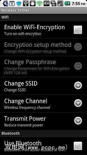 进入设置以添加加密或更改手机传输的SSID。如果您要在没有插头的情况下进行广播,则肯定要调低发射功率以尽可能节省电池。