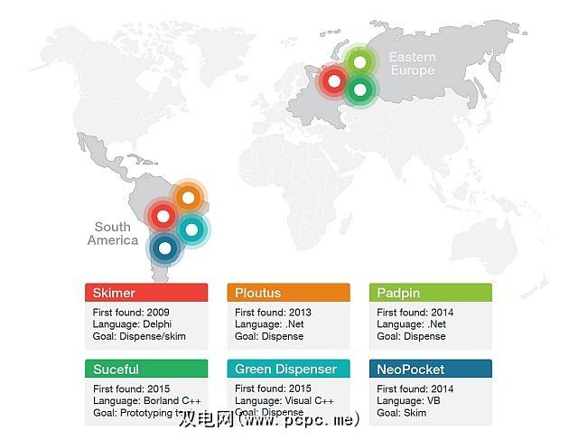 从选定的钞箱(存放钱的比特)中随意分配现金。同时,趋势科技的研究人员记录到,涉及欧洲ATM的欺诈攻击增加了15%,从而确定了全球范围内制造商特定的多种恶意软件变体。