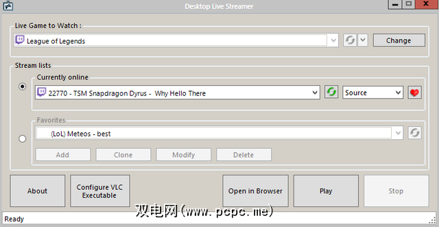 Desktop Live Streamer采用了一种很棒的方法使用带有Livestreamer [不再可用]的命令行界面通过VLC观看流,并在其周围包装一个非常小的GUI。尽管Livestreamer的使用非常简单,但是Desktop Live Streamer却使整个过程变得更加困难。