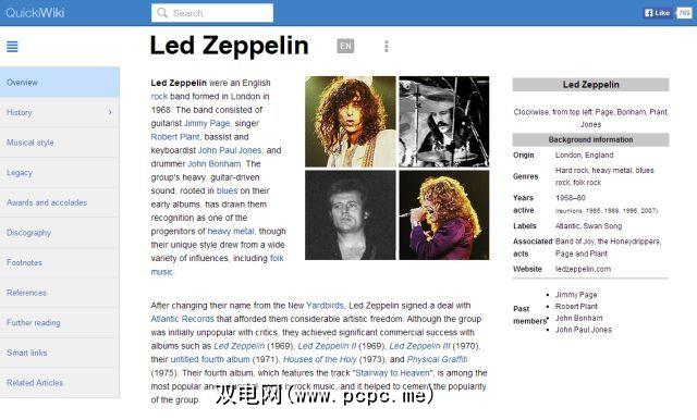 它将所有Wikipedia链接重定向到QuickiWiki,后者声称是高级用户的更好的Wikipedia阅读器。我不能否认这一说法。字体更易于阅读,布局比默认的Wikipedia更整洁,而且我喜欢目录在左侧显示为固定索引以便于浏览。