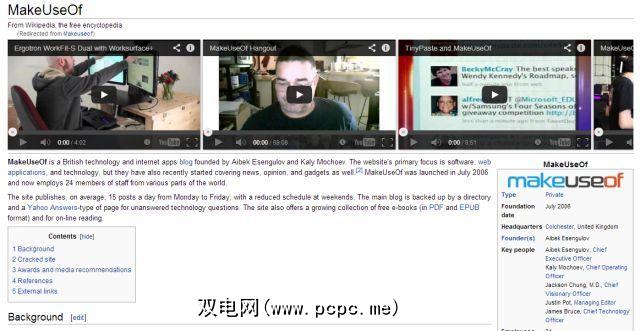 YouTube上有很多关于每个主题的精彩视频,而WikiTube现在结合了这两方面的信息。安装扩展程序并访问任何Wiki页面。几秒钟后,在页面顶部,您会发现一个水平滚动条,其中充满了有关该主题的嵌入式YouTube视频。