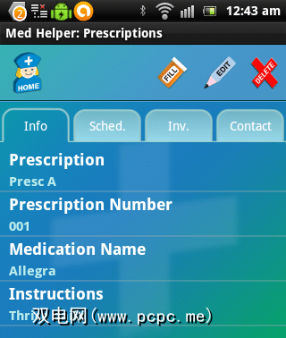 处方:处方是您设置提醒计划,跟踪库存和补充的地方。处方是您应该首先填写的。选项卡式视图显示您可以在其中设置计划表的位置,以及在需要时设置医生和药房信息的地方。