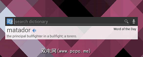 最后,Dictionary.com应用程序为您的主屏幕提供了一个伴随小部件,显示了当日单词并允许您快速查找单词: