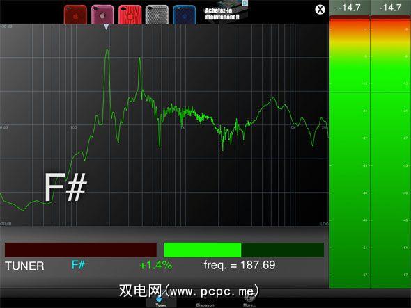 n-Track Tuner非常易于使用。在乐器上弹一个长音符,该应用程序会告诉您所拾取的内容。期待G时看到F尖峰?您必须提高音调。在屏幕底部,当所观察到的音符的音高高于屏幕上显示的音符时,绿色条将向您显示,而红色音条则表示何时音符低于所显示的音符。
