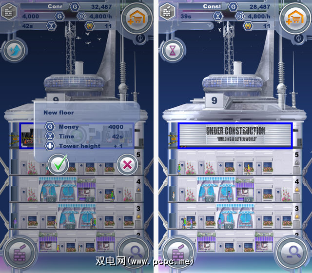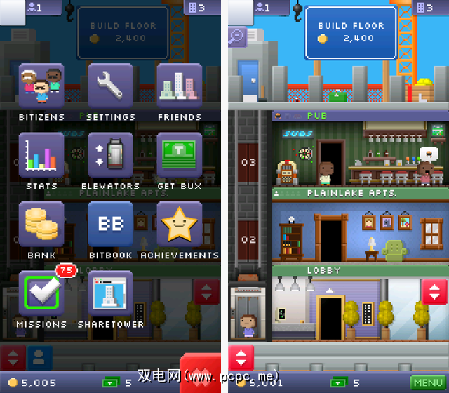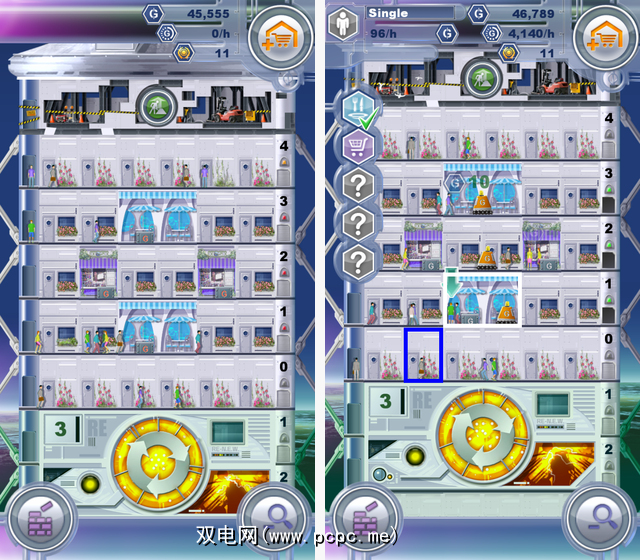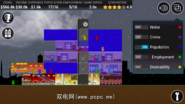 要开始使用,请选择“新塔";如果您喜欢这款游戏,可以稍后再升级到“无限"。一旦开始,控件就很简单。如果单击右下角的扳手,您将获得可建造的所有不同物品的选项:居住场所,食品店,电梯和楼梯等。