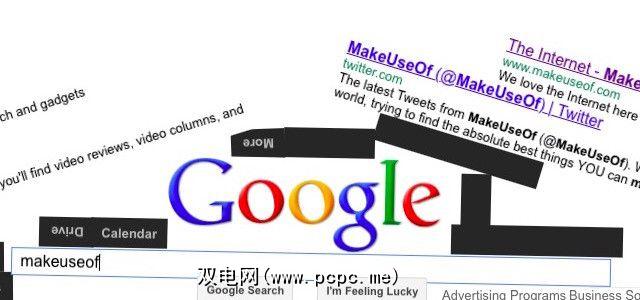 2。 Google重力::在Google搜索中输入 google重力,然后点击“我很幸运"。在引人入胜的引力演示中,谷歌首页的所有元素都掉了下来。搜索功能仍然有效,但是每个查询的结果相互叠加。