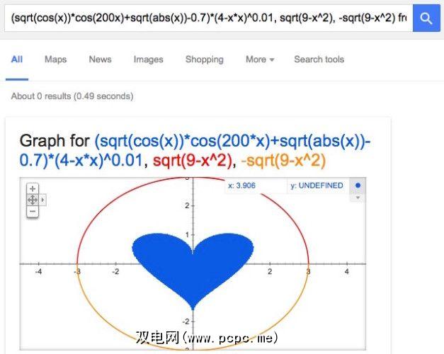 3。画出一颗心:数学很可怕,但Google证明它也可以很漂亮。在Google搜索中复制并粘贴以下代码,然后按Enter: