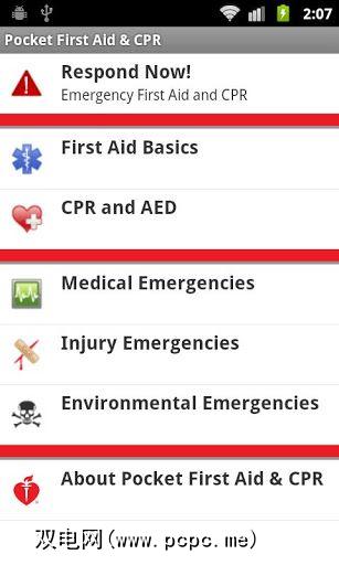 Pocket First Aid&CPR Android应用是该应用的付费应用一堆,但只需花费几美元(1.99美元)。它具有可浏览的内容,可用于急救紧急情况,并针对成年人和儿童对心肺复苏和窒息的反应提供单独的详细信息。内容由美国心脏协会志愿者小组提供。