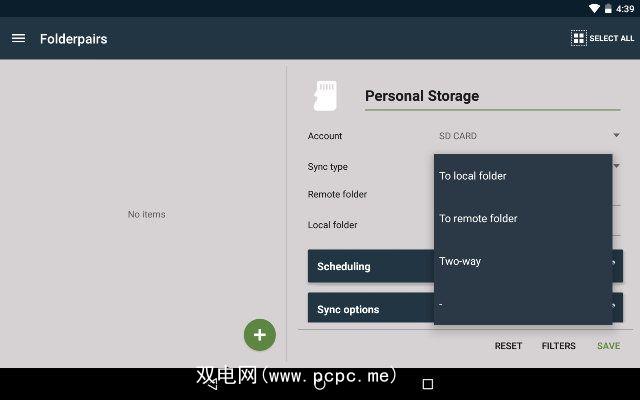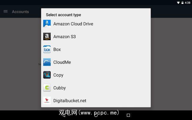 让我们说Dropbox,Google云端硬盘或Box都不存储您的文件。在这种情况下,您应该签出FolderSync。该应用程序包括这三个选项,但还支持Microsoft OneDrive,SugarSync,Copy.net和许多其他选项。