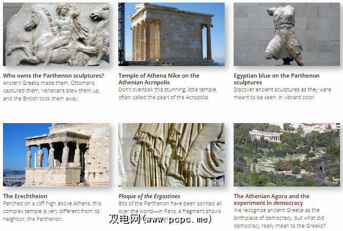 主题涵盖了整个人类历史;该网站被整齐地分为几个部分,例如古代地中海,1900年的美洲和伊斯兰世界,以便于导航。