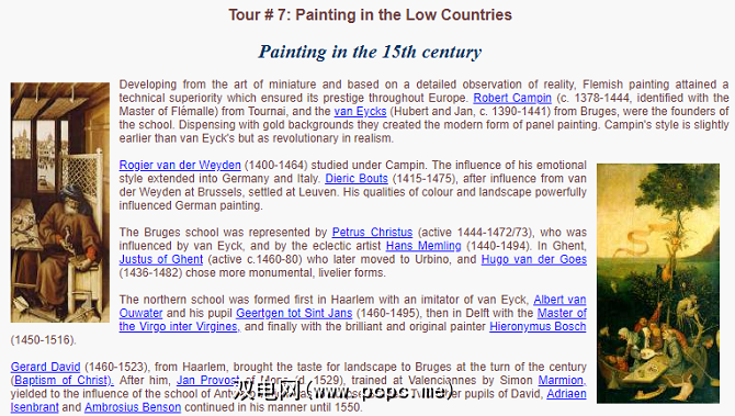 虚拟游览是了解艺术历史某些方面的好方法。您有16种可供选择。例子包括1450至1550年间日耳曼国家的艺术,低地国家的绘画(1400-1800)和Giotto的艺术。
