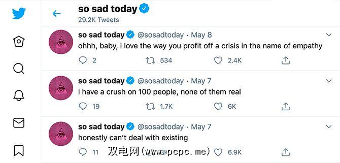 过去就行了,我们想推荐这么伤心今天:一个Twitter帐号致力于伤心,但搞笑单行鸣叫