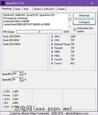 SpeedFan还具有以下功能:监视温度,因此它就像一个二合一应用程序-只是不如上面的其他应用程序先进。
